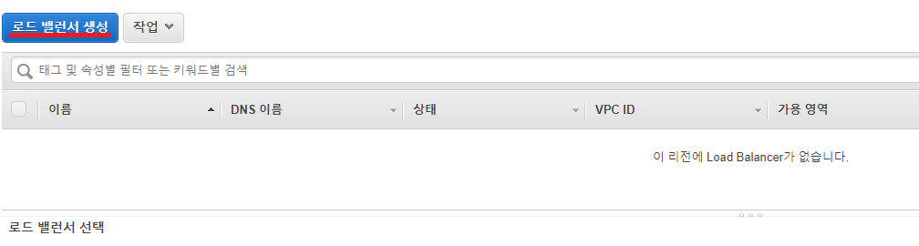 상단에 있는 로드 밸런서 생성 버튼을 클릭해줍니다.