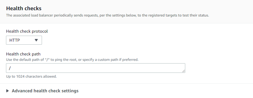 그리고 Health checks는 다음과 같이 기본 값을 유지한 뒤 Next 버튼을 클릭합니다.