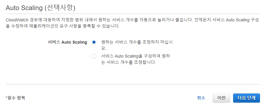 [ 7. 서비스 정보 입력 - 오토스케일링 설정 ]