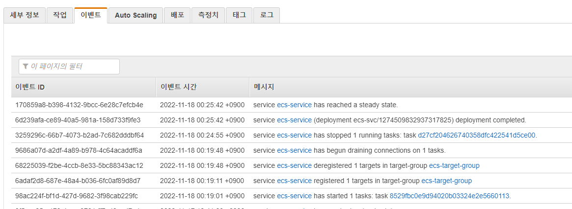 그리고 ECS Service의 이벤트 탭을 확인해봅니다.