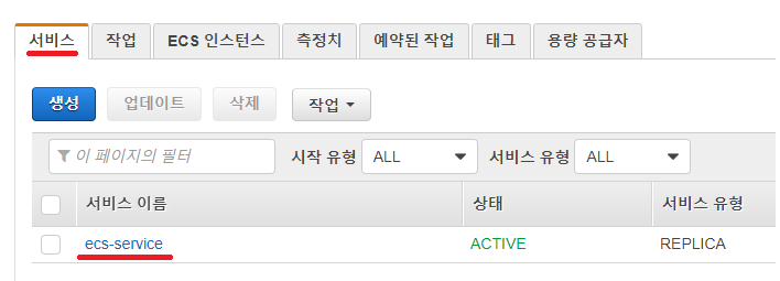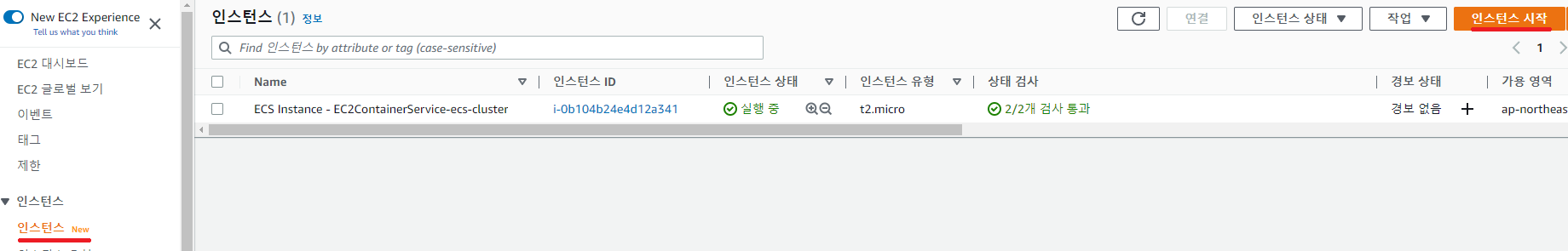 위의 과정까지 했을 때 ECS 인스턴스 목록을 보면 다음과 같이 위에 생성한 인스턴스가 보이지 않는 것을 확인할 수 있습니다.