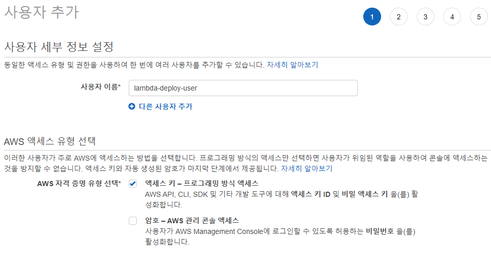 액세스 유형에서는 액세스 키를 선택해주면 됩니다.