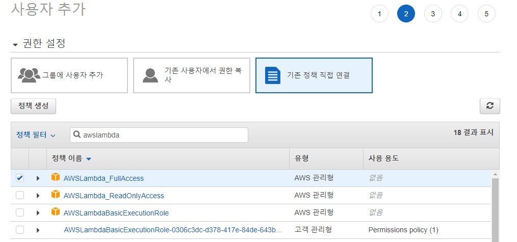 결과적으로 AmazonS3FullAccess, AWSLambda_FullAccess 권한이 부여되어 있으면 됩니다.