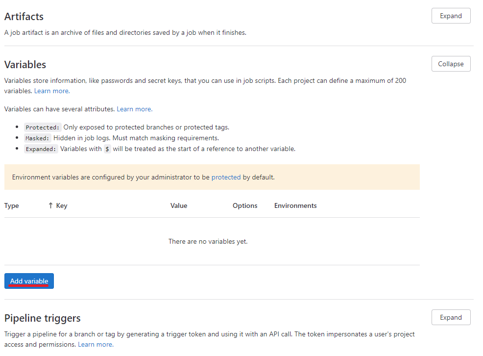 그다음 Variables를 찾은 뒤 Add variable를 눌러 필요한 변숫값을 추가해줍니다.
