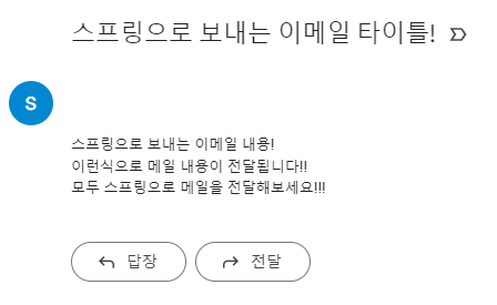 "모두 스프링으로 메일을 전달해보세요!!!");