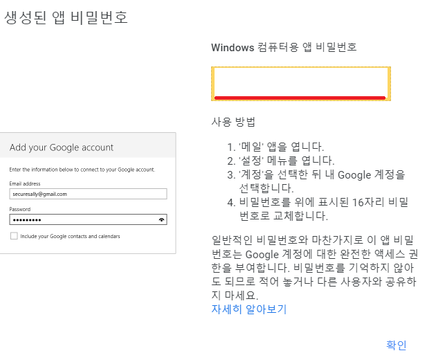[ 6. 앱 비밀번호 생성하기 - 비밀번호 확인 ]