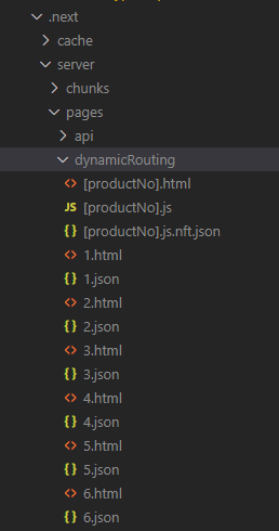 build를 한 뒤 .next → server → pages를 확인하면 prerendering이 되어 상품 번호 1~6에 해당되는 html과 json 파일들이 모두 생성되어 있는 것을 확인할 수 있습니다.