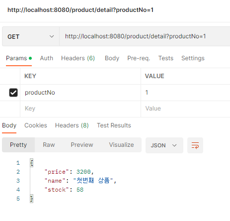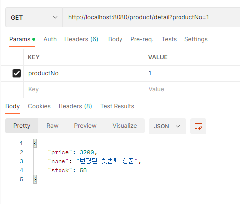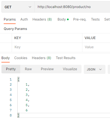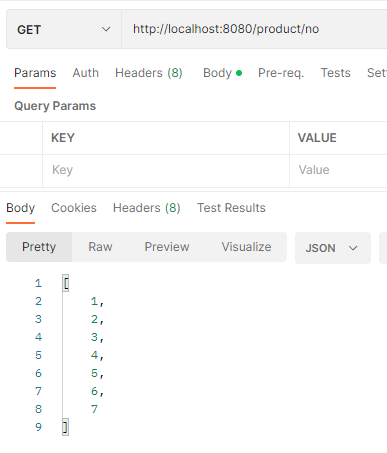 여기서 API를 수정하여 상품 번호가 7인 것도 함께 리턴해주도록 해보겠습니다.