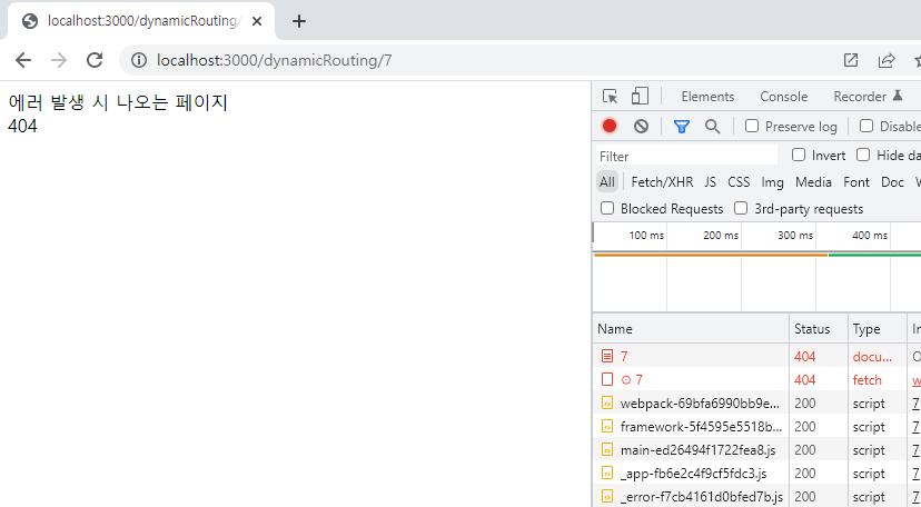 분명 prerendering이 되지 않아 build 단계 때 만들어지지 않은 경로에 해당되는 파일이지만 위와 같이 정상적으로 화면이 뜨는 것을 확인할 수 있습니다.