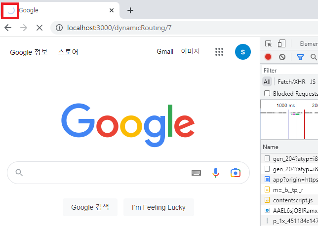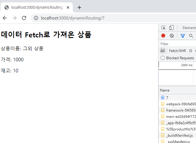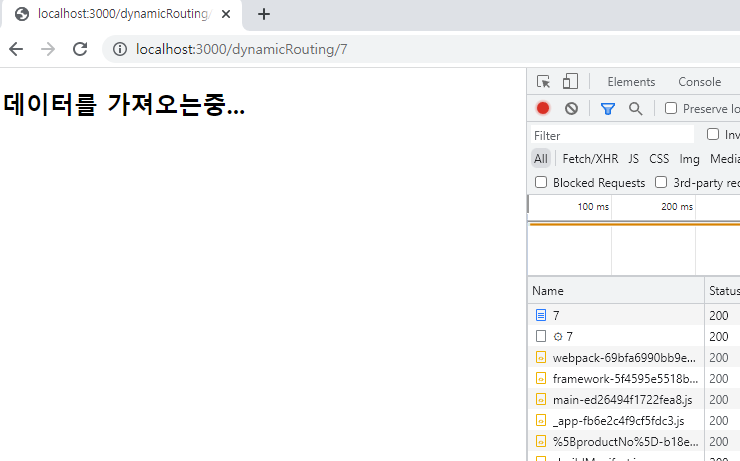 위와 같이 코드를 작성한 뒤 true일 때와 동일하게 build → API에 상품 번호 7 추가 → 상품 번호 7 페이지 접속을 하면 페이지가 렌더링 되지 않고 fetching을 위한 작업이 진행되는 것을 확인할 수 있습니다.