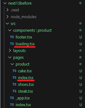 이와 동일한 결과를 만드는 것을 next13에서는 loading.tsx 파일을 만들어 대체해 볼 수 있습니다.