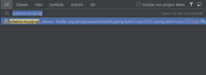 그리고 해당 창의 검색어에 "schema-mysql.sql"을 입력하면 다음과 같이 하나가 조회되는 것을 볼 수 있습니다.