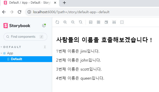 그리고 Storybook을 실행하여 확인해 보면 다음과 같이 mocking 처리가 된 API 결과를 볼 수 있습니다.