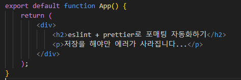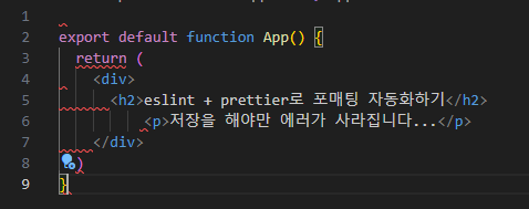 올바르게 적용이 되었다면 아무 파일이나 들어가서 다음과 같이 설정했던 포맷에 맞지 않는 코드를 작성할 때 빨간 줄로 표시가 되는 것을 볼 수 있습니다.