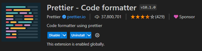 혹시나 설치가 안되어 있으시다면 설치를 해주시면 되고 이 외에 prettier 관련 패키지가 없기 때문에 다음 명령어를 이용하여 추가 설치를 진행해 주시면 됩니다.