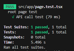 다음과 같이 handler에 등록된 API를 사용하는 코드를 작성한 뒤 jest를 이용하여 테스트를 수행했을 때 API 응답이 정의된 대로 돌아오는지 확인해 보겠습니다.