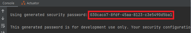 서버가 정상적으로 실행될 경우 다음과 같이 콘솔 창에 security password가 보이는 것을 확인할 수 있습니다.