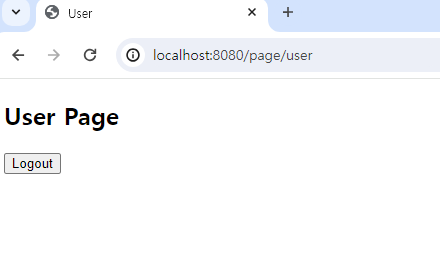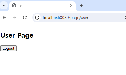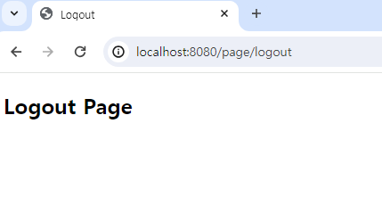 /page/user 또는 /page/admin에 보이는 로그아웃 버튼을 클릭해 보면 다음과 같이 /page/logout으로 redirect 되는 것을 볼 수 있습니다.