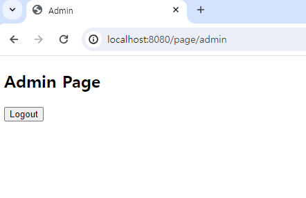 그러면 user와는 달리 해당 페이지에 대한 접속 권한이 있는 admin은 다음과 같이 접속이 올바르게 되는 것을 확인할 수 있습니다.