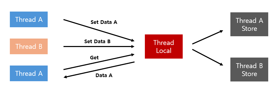 thread local을 사용하게 된다면 위와 같은 상황은 다음과 같이 변경될 수 있습니다.
