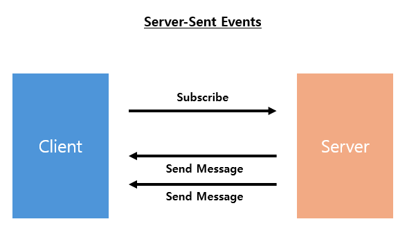 sse 같은 경우는 client 측에서 server에 구독 과정을 통해 connection을 맺고 server에서만 client에 실시간으로 데이터를 전달합니다.