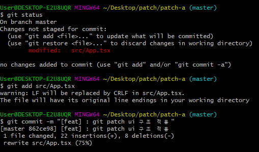 간단한 예시로 제가 patch 파일을 활용하고 있는 상황을 만들어보겠습니다.