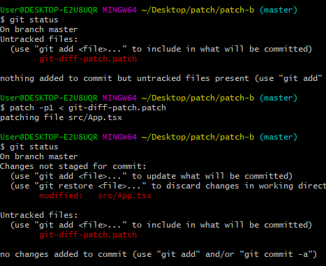 이제 patch 파일을 patch-b 프로젝트에 옮겨서 변경 사항들을 그대로 적용해 보겠습니다.