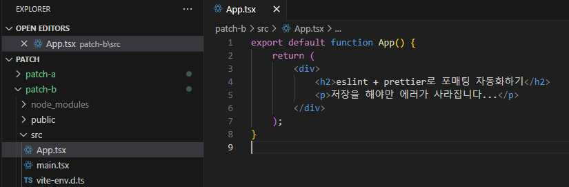 - <h2>eslint + prettier로 포매팅 자동화하기</h2>