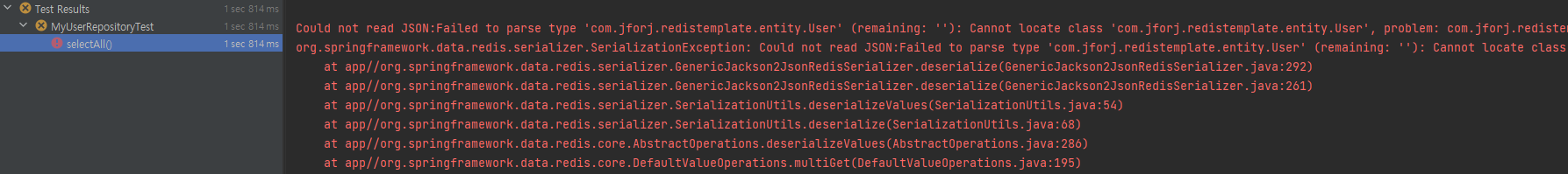 하지만 serializer 설정을 할 때 redis에 저장되어 직렬화가 발생될 수 있는 모든 객체 정보를 등록해줘야 하는 단점이 존재합니다.