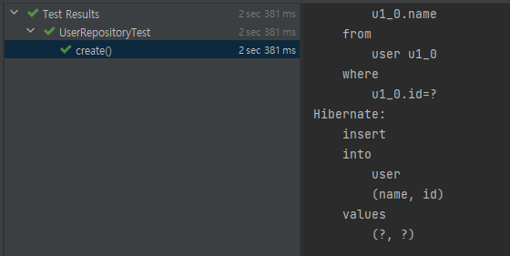 다음과 같이 repository에 대한 테스트 코드를 작성한 뒤 각 테스트들을 동작시켜 보면 다음과 같은 결과를 확인할 수 있습니다.