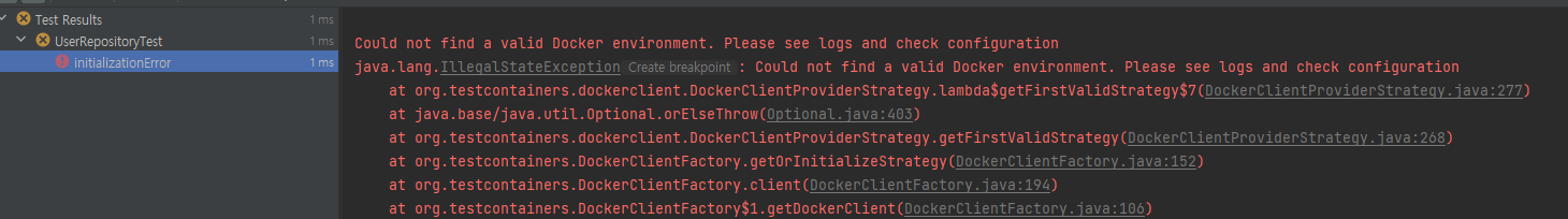 test container는 위에서 얘기한 대로 container 동작을 위해 테스트가 실행되는 환경에는 docker 사용이 가능해야 합니다.