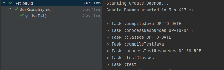 redis를 사용할 수 있는 환경이 구성되어 있는 상태에서 위와 같이 코드를 작성한다면 다음과 같이 테스트가 동작되는 것을 확인할 수 있습니다.