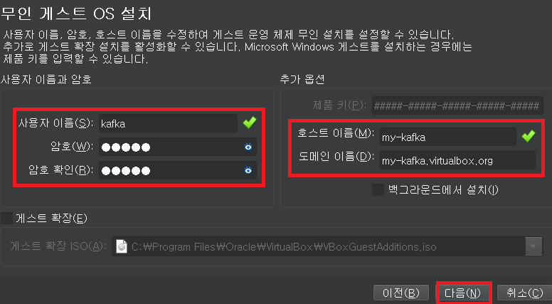 가상 머신 생성이 완료되면 가상 머신이 자동으로 실행되며 추가적인 설정을 요구합니다.