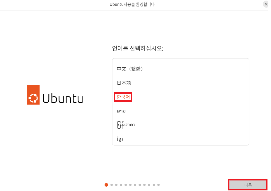원하시는 언어를 선택한 뒤 다음을 클릭합니다.