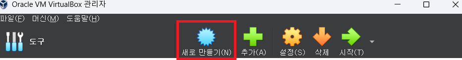 먼저 설치된 virtual box를 실행시킨 뒤 "새로 만들기"를 클릭합니다.
