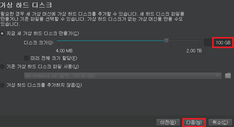 저는 이번에 다음과 같이 100GB로 설정해 보겠습니다.