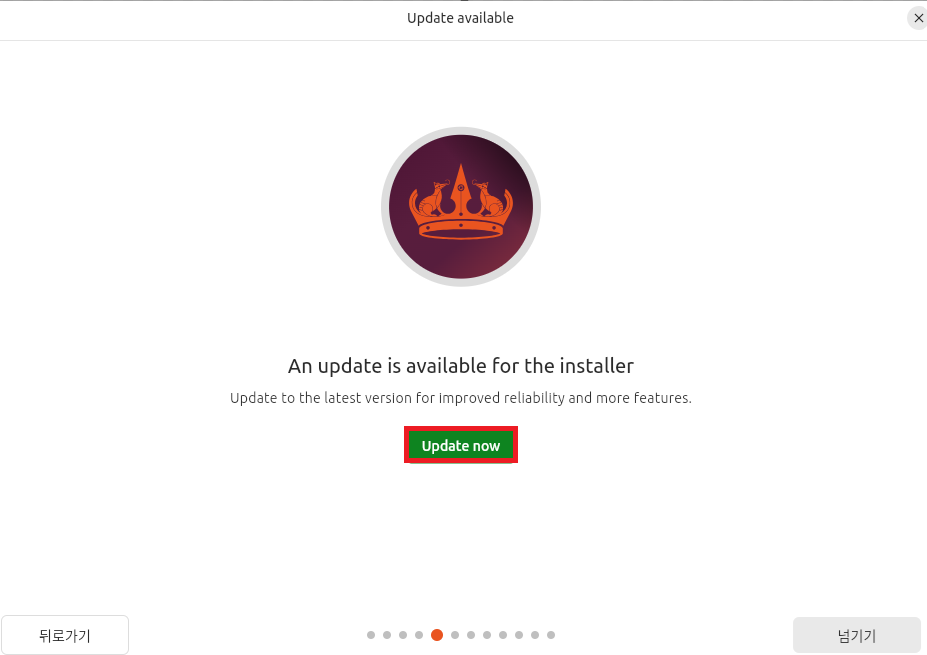 최신 버전에 대한 업데이트를 "Update now"를 클릭하여 진행합니다.