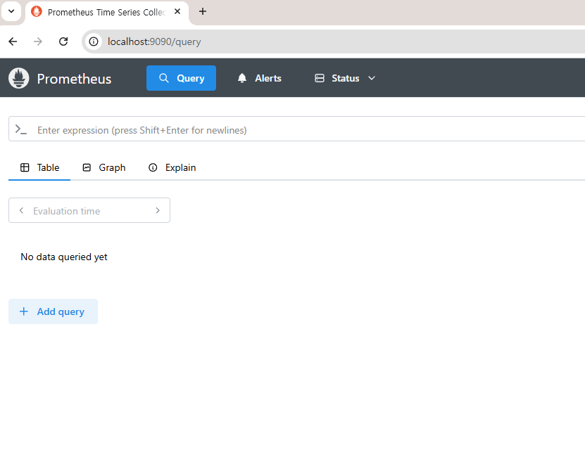 prometheus 설치가 올바르게 되었는지 확인하기 위해 prometheus의 web ui에 접속해 보겠습니다.