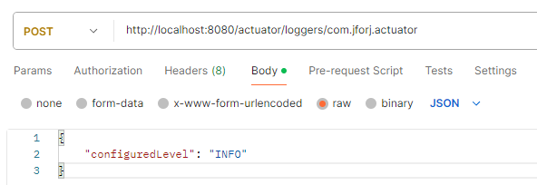 - POST [host]:[port]/actuator/loggers/[변경할 logger 계층]