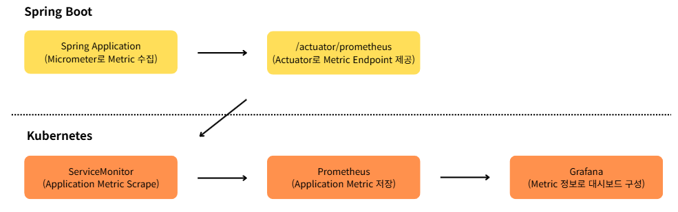 kubernetes에 배포되는 애플리케이션 내부에서 metric을 수집하기 위해서 필요한 것은 다음과 같습니다.