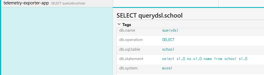 그중 select 처리가 이루어진 span을 확인하면 query도 함께 보이는 것을 볼 수도 있습니다.