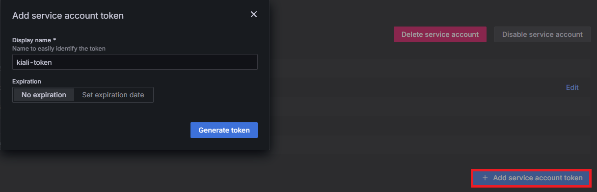 kiali에서 grafana를 연동할 때 OIDC 기반의 접근을 위해 access token을 발급하여 kiali 설정에 추가해야 합니다.