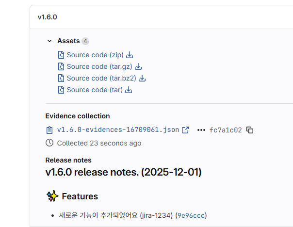 그리고 마지막으로 "Deploy > Releases"를 확인하면 다음처럼 md 파일에 남긴 정보들이 표시되는 것도 확인 가능합니다.