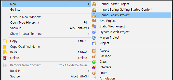 spring legacy project를 생성할 경우 dispatcher servlet의 실행 흐름을 위한 설정이 기본적으로 되어있습니다.