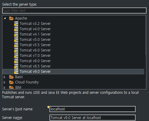[ 7-2. 설치한 tomcat버전 선택 후 Next ]