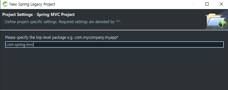 [ 3. 패키지명은 com.spring.mvc 입력 후 Finish ]