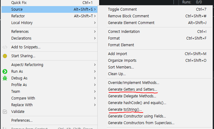 혹시 getter, setter와 toString을 만들 때 직접 작성하시는 분은 안계시겠죠?