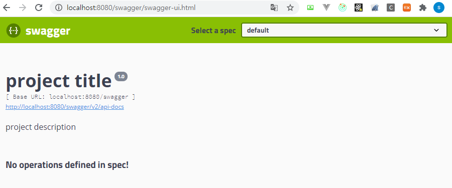 [ 4. 프로젝트 실행 후 기본 URL에 /swagger-ui.html을 입력 ]