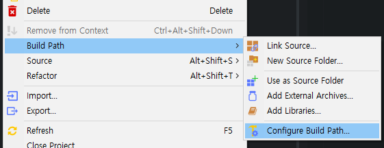[ 3. 프로젝트 우클릭 → Build Path → Configure Build Path... 클릭 ]