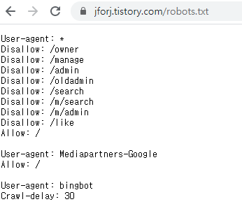 데이터 사용 여부에 대해서는 보통 robots.txt파일을 확인하는데 웹 페이지마다 robots.txt를 확인하는 방법은 도메인 명 뒤에 /robots.txt를 입력하면 됩니다.
